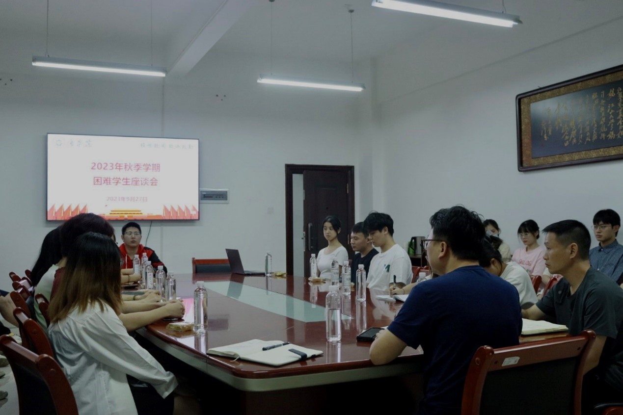 2023年9月27日,商学院在经管315会议室召开2023年秋季学期困难学生座谈会,听取困难学生对学校教学、管理、服务等方面的意见建议,倾听学生心声,回应学生关切,解决学生急难愁盼问题。商学院院长王小兵、副院长李闯、党委副书记赵晓军、学工办主任段思遥及全体辅导员及我院困难学生代表参加本次座谈会。