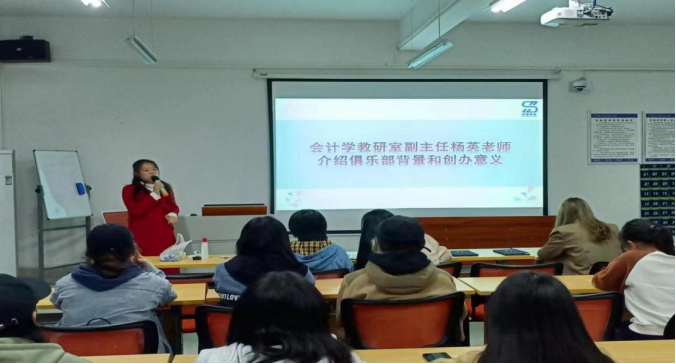 会计学教研室副主任杨英老师介绍了俱乐部的创建背景和意义,在当前大数据、人工智能等技术飞速发展的背景下,财务行业正面临着深刻的变革,作为未来财务从业者,要积极拥抱变革,不断提升自身的数字素质和技能水平,以适应行业发展的新需求。杨英老师表示今后将积极拓展与其他学科专业的合作,促进不同学科专业的交叉融合。她建议结合大学生财务大数据竞赛、企业模拟经营竞赛、ACCA财智精英挑战赛等学科竞赛活动组织一些经验分享和企业参访,积极参与本科生导师制,参加老师的科研项目,发挥俱乐部管理团队赋能会计学专业人才培养的积极作用。她希望协会能配合教研室运营好会计学专业的数智财务公众号,每一届同学要发挥好“传帮带“作用。