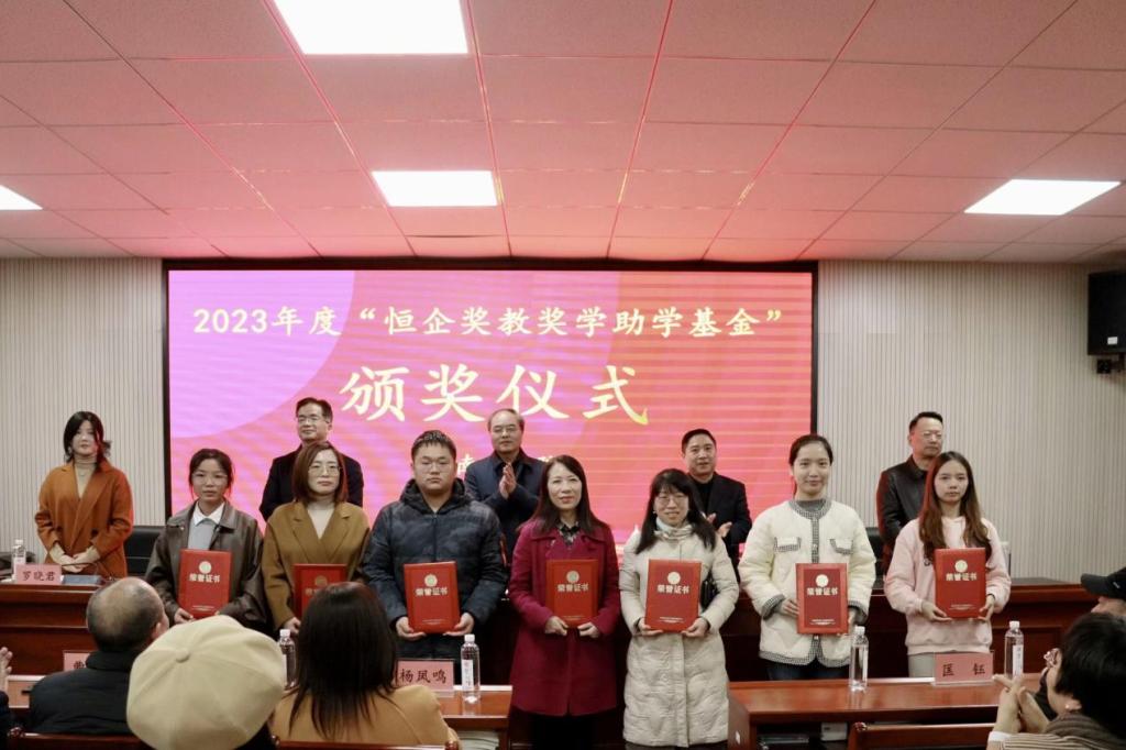江健宣读了第三届“恒企奖教奖学助学基金”获奖受助师生名单。