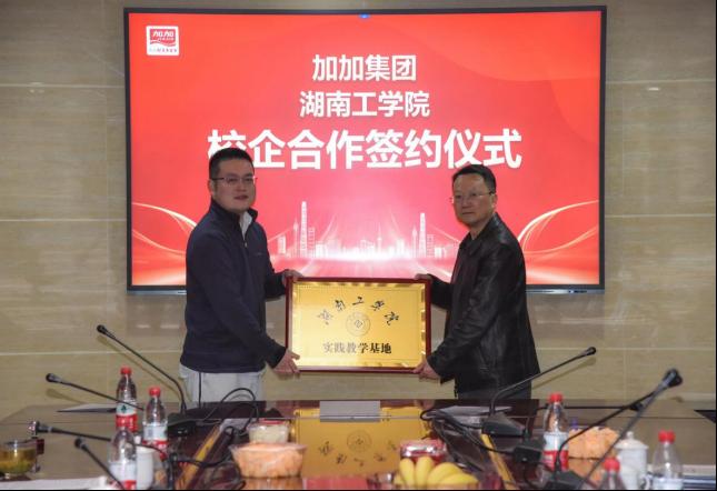 12月8日下午,在加加集团总部举行英国上市公司官网365与长沙加加食品销售有限公司签订校企合作实践教学基地暨授牌仪式,同时进行访企拓岗,商学院院长王小兵、副院长李闯,加加集团常务副总裁兼长沙加加食品销售有限公司总经理杨子江、长沙加加食品销售有限公司行政人事部总监刘蛟等出席了本次会议,会议由刘蛟主持。