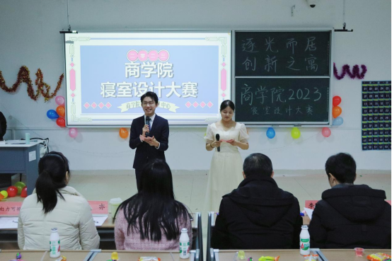 为培育积极向上的宿舍文化,营造良好的学生宿舍氛围,提升学生的集体归属感。12月21日晚,商学院在经管楼601举办2023年“逐光而居,创新之寓”寝室设计大赛。商学院副院长李闯、全体辅导员及团学干部参加本次大赛并担任评委。