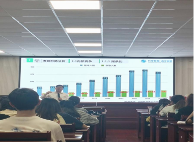 国老师从考研最新形势,择校择专业以及公共课备考规划三个方面向同学们展开辅导。通过对去年的考研形势以及结合各个年份的报录比的深入分析,国老师引出了“高端战场”和“低端战场”的概念和“选择>努力”的考研定律,他指出同学们要根据自身情况找准目标,以踏实的治学态度练好自己的内功,抱着必胜的决心应对各种困难与挑战,并为学子们提供可行性建议。