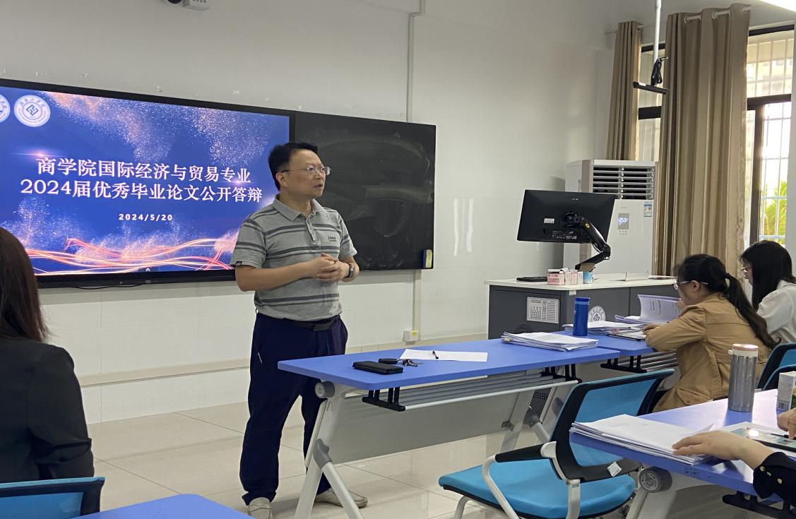 2024年5月20日上午,商学院国际经济与贸易专业在107室举行2024届优秀毕业论文公开答辩。本专业的论文指导老师、参加优秀论文公开答辩的学生及本届毕业生参加了答辩会。