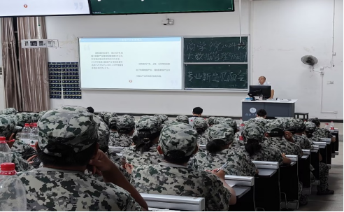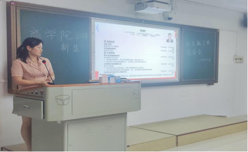 袁鹏为新生从专业定位、办学条件、主干课程、特色优势及就业前景等五个方面较为全面对工商管理专业做了介绍。