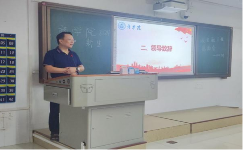 院长王小兵致辞,并进行了总结发言,首先对2024级新生的到来表示了热烈欢迎,对莅临和参与本次活动的企业专家、校友表示衷心感谢,同时就专业发展、职业规划、学习方法等问题做了精彩讲话。他认为数智商科是商科的发展方向,今年大数据管理与应用专业招生火爆,有领导的期待和家长的期盼。大数据的优势在于跨学科特性、实践和理论并重,产学研结合、广阔的就业前景、技术与行业的深度融合、灵活的就业前景及政策支持,培育社会急需的大数据人才。同时他勉励新生要牢记校训,以勤勉务实的精神努力追求卓越,为大学生涯写下精彩一页。