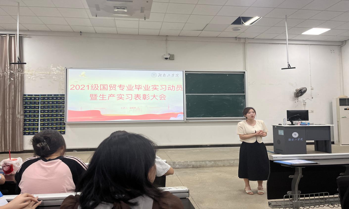 为进一步强化实践教学管理,提升学生的实践动手能力,培养高素质应用型人才,让学生提前做好毕业实习的准备工作,商学院于9月29日在6215召开了国际经济与贸易专业毕业实习动员暨生产实习表彰大会。学院副院长李闯、国际经济与贸易教研室主任温毅娴、教师代表以及全体21级国际经济与贸易学生参加了本次会议,会议由温毅娴主持。