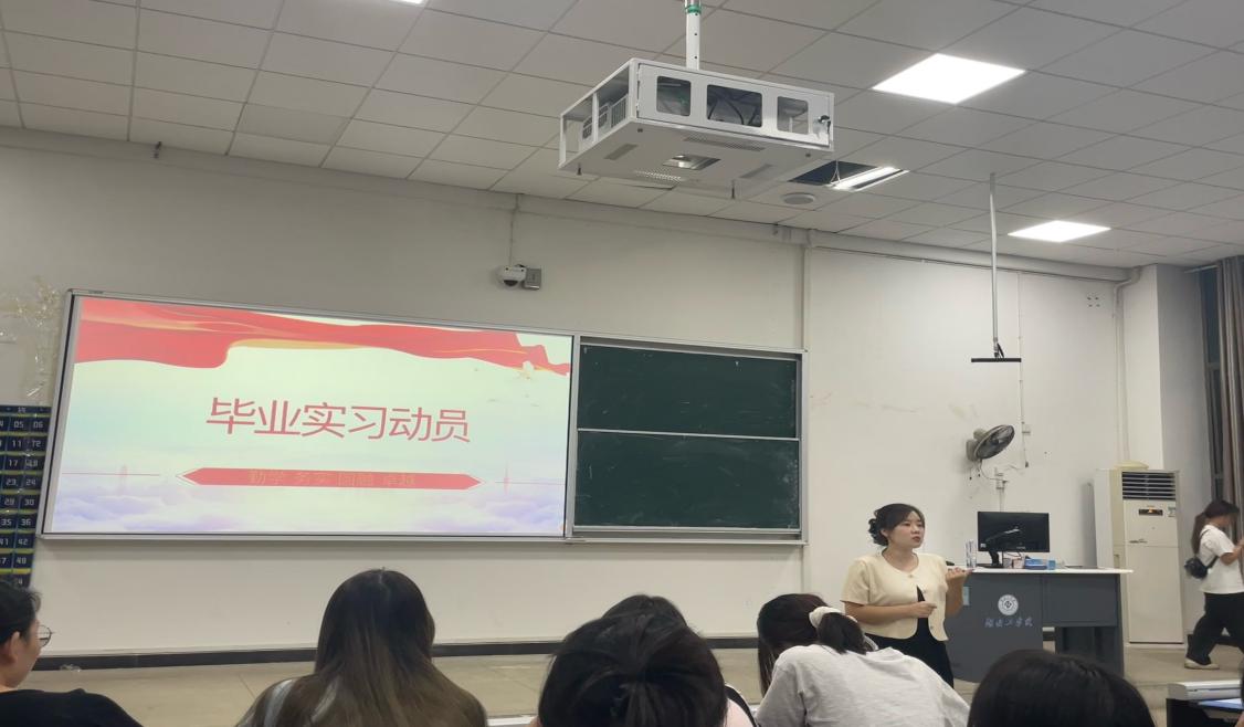 最后,温毅娴主任从实习目的、实习要求、实习内容、时间安排等方面做出了详细介绍,并建议学生在毕业实习过程中一定要多听、多看、多思考,努力将理论知识应用于实践工作当中,做到学有所获,学以致用。毕业实习作为大学生涯的关键环节,也是毕业生走向社会的重要起点,同学们应充分把握这次机会,全面提升综合素质,展示湖工学子风采,同时强调了实习安全有关工作。