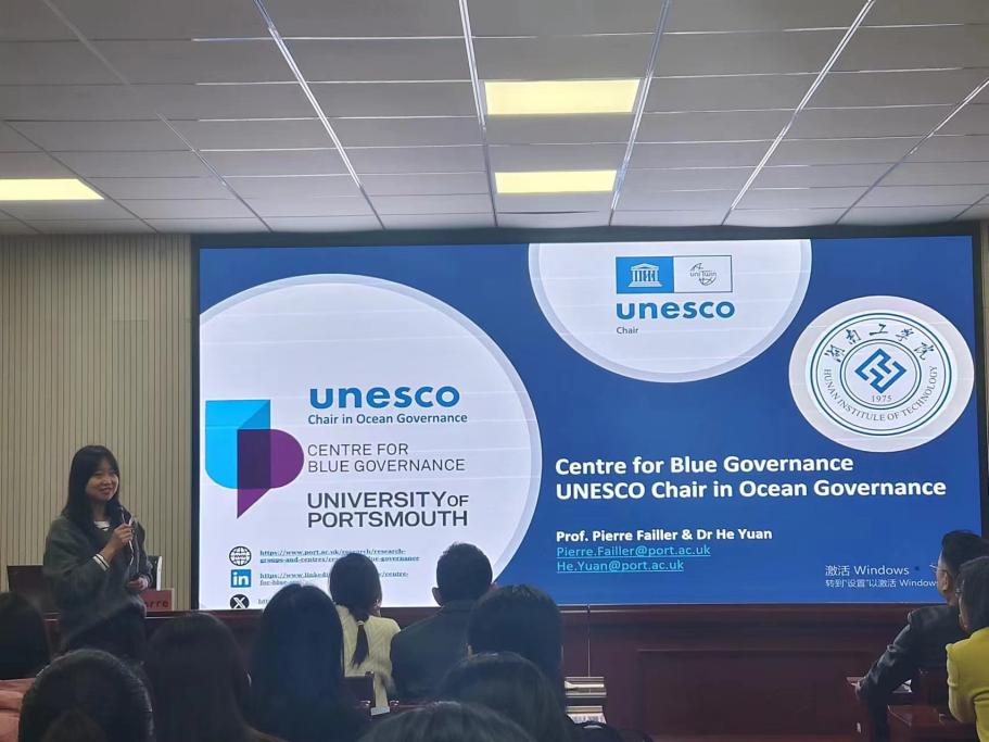 讲座最后,袁合蓝色治理中心和联合国教科文组织进行简要介绍,并鼓励同学们积极参与其中。