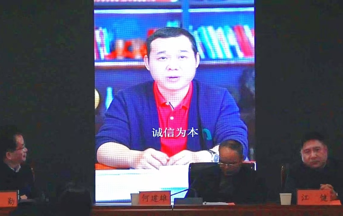 何建雄在致辞中感谢优秀校友——开元教育集团董事长江勇先生为大力支持母校教育事业发展所做出的贡献。他强调:校友的成就和荣誉是对母校教学质量的褒奖与反馈,校友对母校的影响深远而广泛,能提升母校社会声誉、促进资源共享、提供就业机遇、促进产学研融合、为招生宣传增添色彩。近年来,学校以理事会、校友会、基金会为平台,以“校企合作、产教融合”为重点,与企业合作开展多项工作并取得了优秀成绩。他鼓励在座的全体学子,以杰出校友江勇等为榜样,铭记初心,励志笃学,稳步前行,共筑梦想未来。