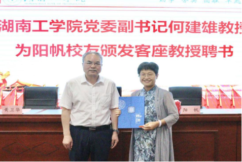 讲座之前,何建雄为阳帆校友颁发客座教授聘书。他强调聘请优秀校友为学校客座教授具有非常重要的意义,这既是校友反哺母校的典范,也是学校推进“双师型”师资队伍建设、强化校企协同育人的重要举措。同时他指出,阳帆校友从“工业卫生工程”专业跨界到“企业财务”领域,成为行业内的领军人才,她用实际行动生动诠释了“勤学、务实、圆融、卓越”校训的深刻内涵,希望同学们能够以阳帆校友为学习榜样,从她的经历中汲取力量和智慧,奋勇前行,创造属于自己的精彩未来。(商学院文/聂梦华 郭玉瑶 图/刘雅琴 全冲/审稿人 一审:张诗菡 二审:朱纪红 三审:李闯)