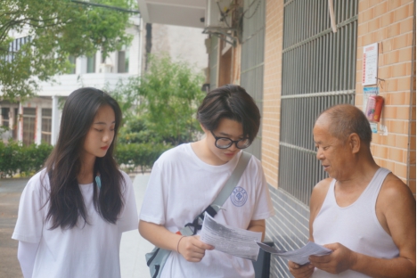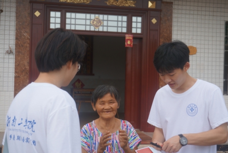 三、走访慰问脱贫户,真情关爱暖人心。为巩固脱贫攻坚成果,全面推进乡村振兴战略,7月19日实践团成员在当地村干部的带领下,开展实地走访调研、帮助扶持脱贫村民活动。每走访一户村民,实践团成员们都与村民展开深切的交谈,详细了解村民的家庭情况、住房条件、经济来源等现实状况,通过宣讲了国家资助政策、发放了国家资助政策宣传手册等形式,让当地村户对国家的资助政策有了更深层次的了解,并且实践团成员针对当地空巢老人、留守儿童等家庭送上了关怀和慰问。