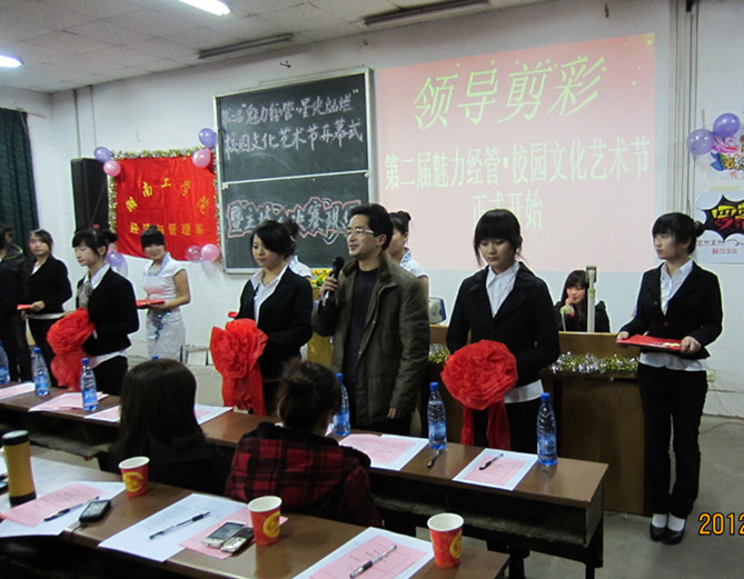 黄春喜在开幕式上致贺辞,他说文化艺术节是一个展示与交流、学习与提升、培养与创造的平台,他鼓励大家能以饱满的热情、积极进取的精神投入到各项活动中来,努力营造积极向上、格调高雅、健康文明的校园文化氛围。系领导为开幕式剪彩后,袁勤宣布本届文化艺术节正式开幕。