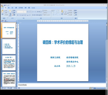 此次讲座是在新冠疫情防控期间开展的一次在线学术交流,通过此次讲座,学院教师对当前社科界理论和实践的热点、焦点问题有了更加明确的认识,也对今后学科建设团队发展起到了一个积极的推动作用。(经济与管理学院)
