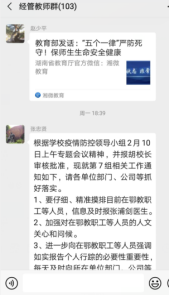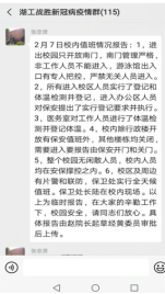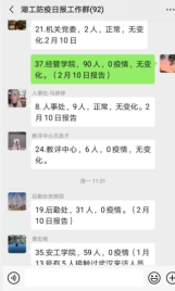 自新型冠状病毒感染的肺炎疫情发生以来,经管学院全体师生坚决服从学校党委行政的领导,严格落实学校疫情防控工作各项要求,齐心协力,同舟共济,以高度的责任感和紧迫感共同战“疫”,坚决防止疫情扩散蔓延。经管学院全体师生始终坚信:“在学校党委的坚强领导下,在全体湖工人的共同努力下,我们同舟共济,共克时艰,一定能早日打赢疫情防控阻击战!”(经济与管理学院)