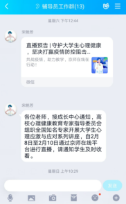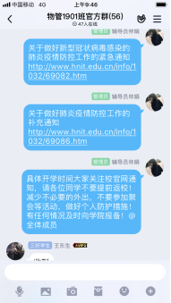 学院通过官方网站、QQ群、微信群等多种媒体平台和宣传途径,持续开展新型冠状病毒感染肺炎的防控宣传教育,向师生和学生家长宣传普及疫情防治知识和防控要求,提醒师生尽量不要外出,科学做好防护,形成学院重视、家校联动、共同防控的良好氛围。积极引导师生文明上网,理性判断信息真伪,做到不恐慌、不信谣、不传谣,凝聚、传递抗击疫情的正能量。学院积极收集疫情防控以来的师生先进事迹和优秀案例,加大对优秀事迹的报道。