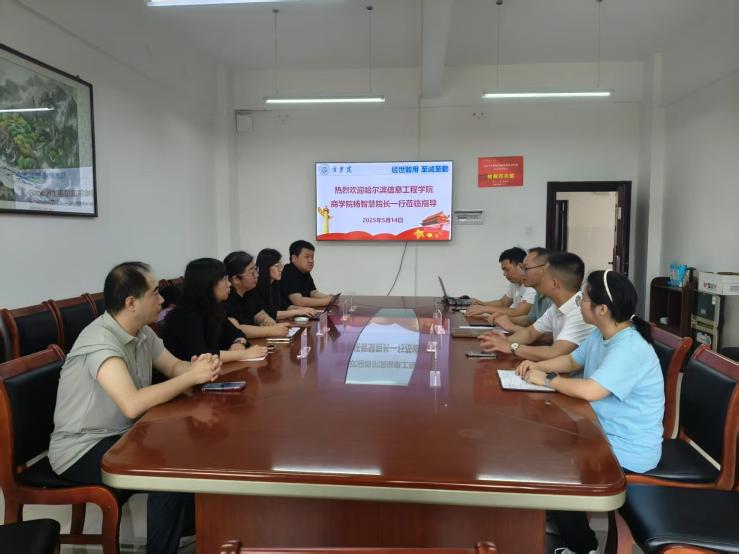 2025年5月14日,哈尔滨信息工程学院商学院院长杨智慧、副院长水俊明一行来我院就商科实践教学数智化改革、人才培养、专业建设相关工作进行调研。学院副院长李闯、黄飞,实验中心主任刘锦志、实验室主任姚尧参加此次交流。