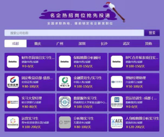 整合优质资源与知名雇主,为学生提供海内外名企实习与就业内推机会;携手知名人才招聘机构,组织专场实习/就业招聘会,提供数量更多、覆盖面更广、专业匹配度更精准的海量优质名企岗位资源。