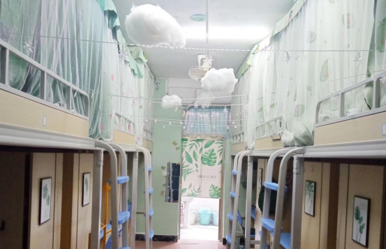 英国上市公司官网365商学院学生宿舍主要集中在学校润泽公寓2栋、6栋、7栋、8栋、9栋、10栋、11栋、15栋,润泽公寓是学校住宿条件最好的学生公寓,一般为标准四人寝,配有独立的卫生间和阳台,每个寝室标配洗衣机、空调、电风扇,每个床铺标配实木书桌、书架和衣柜,宿舍热水使用方便。润泽公寓靠近润泽食堂和学校主教学楼及经管楼,就餐、上课和学习非常便捷,为同学们学习生活提供了舒适温馨的良好环境。