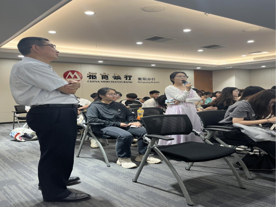 第二阶段,在招商银行李行长带领下,全体师生共同学习《国家金融监管总局发布关于银行业保险业做好金融“五篇大文章”的指导意见》,以中国特色金融文化引领学生展开对金融发展的思考,旨在引导树立正确社会价值导向,提升金融人才培养质量。同学们围绕“养老金融”等方面对调研项目进行阐述与交流。