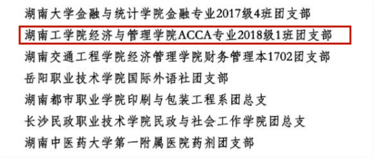 热烈祝贺经管学院会计学ACCA1801班荣获高校活力团支部称号