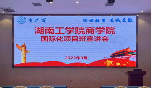 9月13日下午,商学院在维也纳国际酒店举办国际化项目班宣讲会,商学院院长王小兵、副院长朱纪红、金融工程教研室主任丁燕、ACCA官方代表处田艳梅、楷柏财经市场部华南区经理刘彪、楷柏财经湖南区域学服班主任王玉洁、楷柏财经中南区高校运营专员唐力翱以及2022级新生和家长代表参加本次宣讲会。会议通过线上线下相结合的方式进行,副院长朱纪红主持会议。