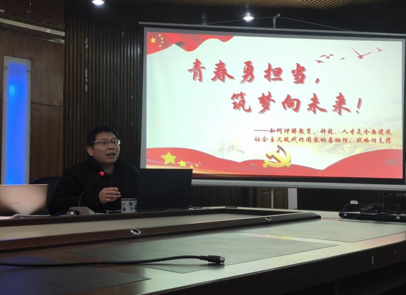黎昂以“青春勇担当,筑梦向未来”为主题,围绕党的二十大报告中“教育、科技、人才是全面建设社会主义现代化国家的基础性、战略性支撑。”这一重要论断,从“全面理解教育、科技、人才在全面建设社会主义现代化国家中的地位作用”、“深刻认识新时代加快建设教育强国、科技强国、人才强国的历史使命”、“准确把握坚持教育优先发展、科技自立自强、人才引领驱动的相互关系”等方面带领全体党员进行了深入系统学习,并结合自身学习感悟,向全体党员提出了几点希望和要求。一是全体党员要不忘初心、牢记使命,做到讲规矩、拼学习、守纪律;二是自觉站在高处、学在深处、干在实处、创在新处;三是以党的二十大精神为指引,以奋勇争先的状态,铆足“比”的干劲,提高“学”的自觉,激发“赶”的动力,增强“超”的气魄,引领广大师生努力工作、勤奋学习,为实中华民族伟大复兴的“中国梦”贡献智慧和力量。