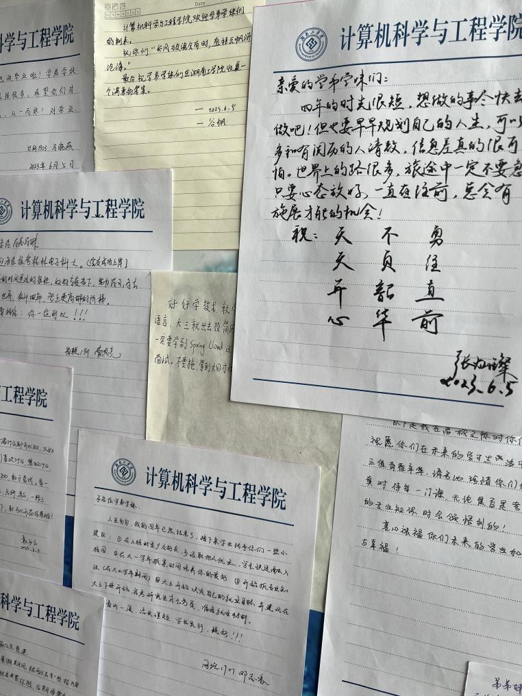 青春的步履,总是与祖国同向而行。2023届的毕业生即将离校,全体毕业生党员积极参加了计算机学院组织的“展翅高飞,寄语前行”毕业寄语留言墙活动。他们满怀热忱给学弟学妹们写下深深的祝福与期望,勉励大家珍惜在校时光,接续奋斗,做有理想、敢担当、能吃苦、肯奋斗的新时代好青年。
