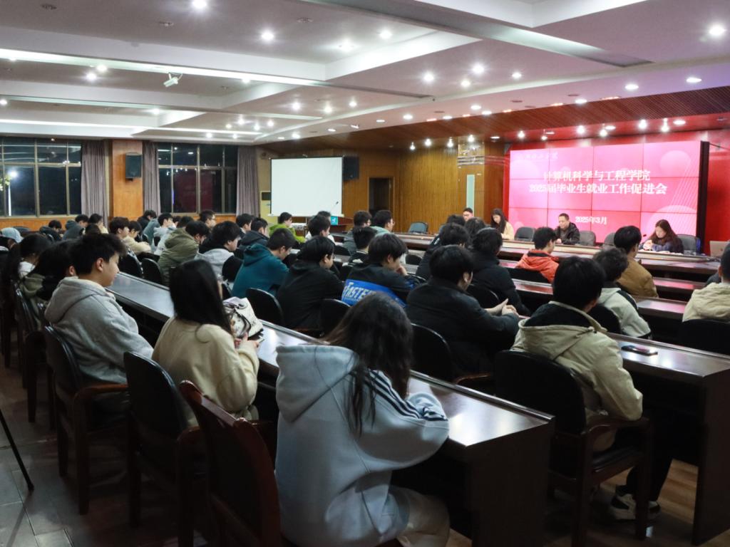 为进一步推动2025届毕业生就业工作,帮助毕业生了解各类求职渠道、熟悉就业政策、助力毕业生提升就业能力,3月18日晚,计算机科学与工程学院在信息楼2216大会议室召开2025届毕业生就业工作促进会。计算机学院党委书记叶正明、党委副书记黄馨仪、学工办主任刘泽芬、副主任热苏里·乌斯曼、就业专干李家驹出席会议,在校毕业生参加会议,未在校毕业生通过线上形式参加会议。