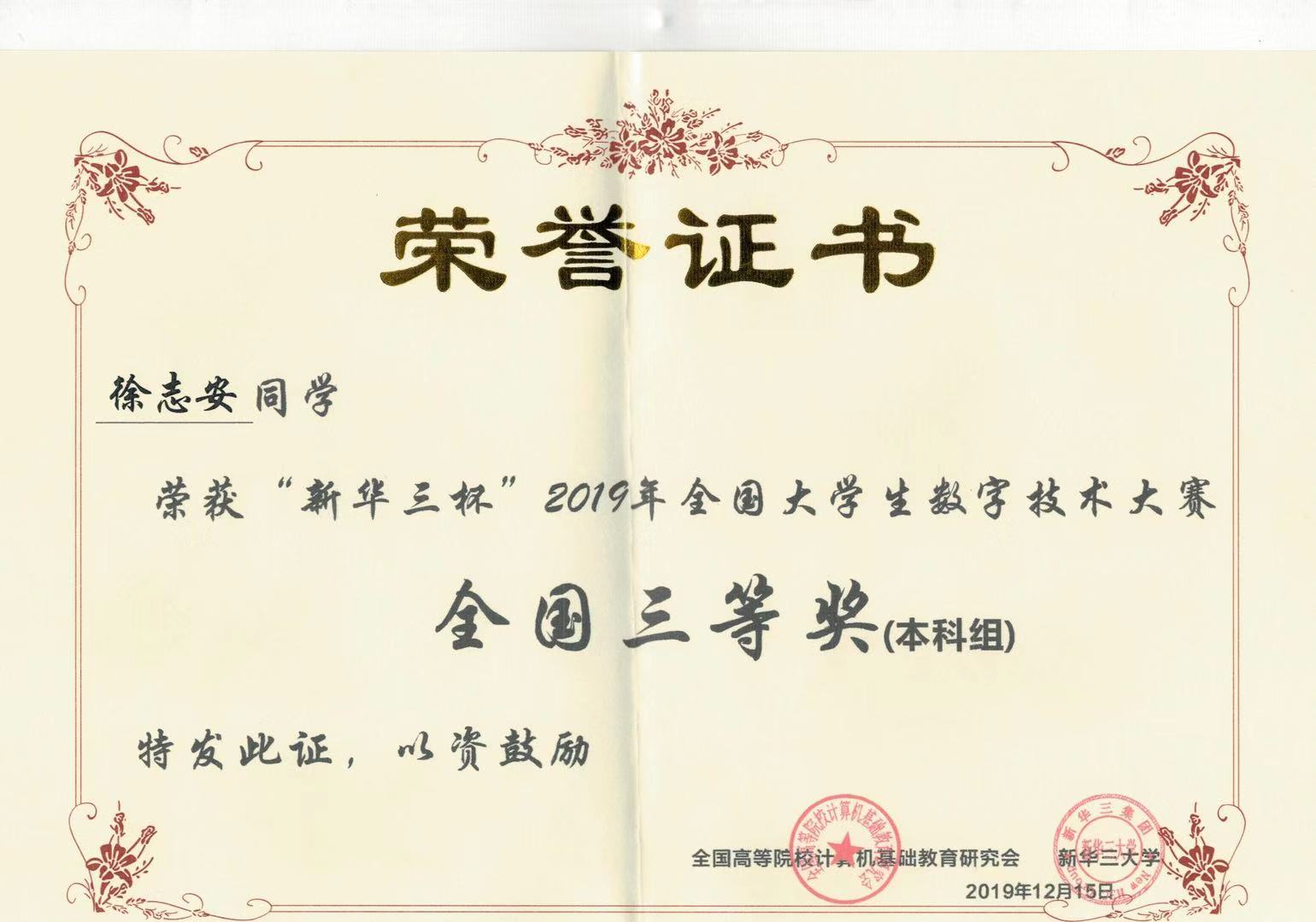 由全国高等院校计算机基础教育研究会和紫光旗下新华三集团联合主办的第九届“新华三杯”全国大学生数字技术大赛圆满闭幕。本届比赛共有来自全国29个省市自治区的520所院校、16500位选手报名参赛。12月15日,总决赛在杭州市举行,英国上市公司官网365计算机学院网络工程专业李森和徐志安同学分别荣获全国三等奖。