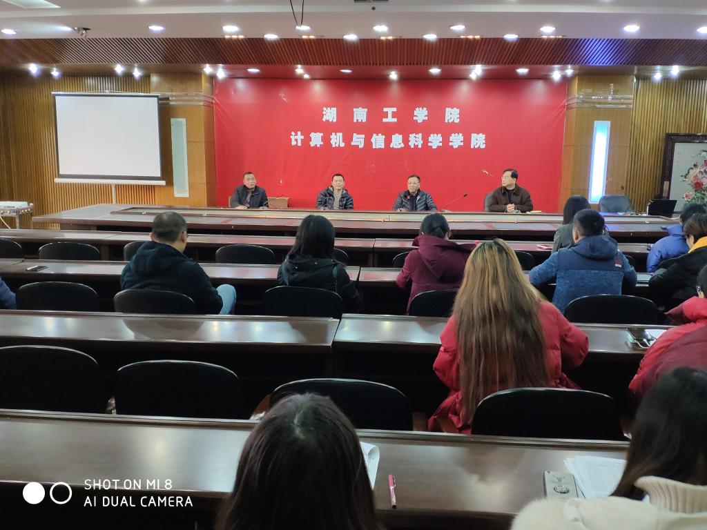 走访完后,恰逢学院召开全院教职工大会之际,两位领导又亲临大会会场,谢国保作了重要讲话。会上,他对老师们的爱岗敬业的精神和态度给予了充分肯定和高度评价,并勉励广大教职员工要刻苦钻研,不断提高业务水平,不断加强师德师风建设,不断提升教学质量,为学校的发展添砖助力。最后,谢国保代表学校党委和行政向全院教职员工表达了亲切的慰问和新年的祝福。(计算机与信息科学学院)