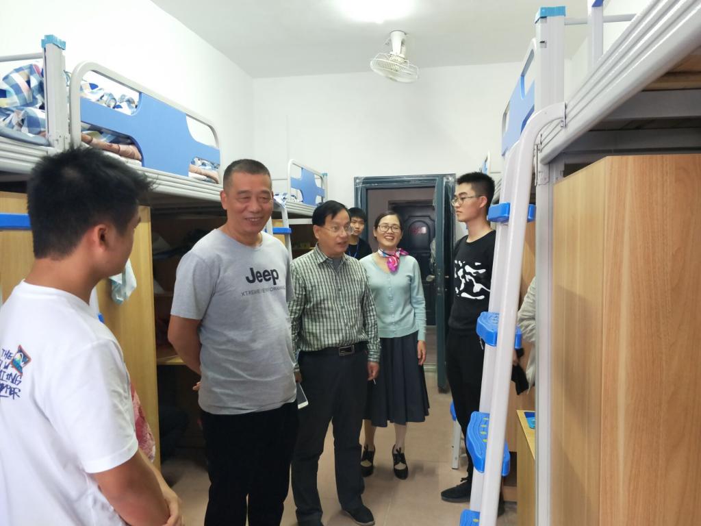 为及时了解新生状态,帮助新生适应大学生活,10月12日下午,计信学院院长罗庆云、党委书记李立波、副书记李玉秀带领辅导员老师走访新生宿舍,关心慰问刚入校的新同学。