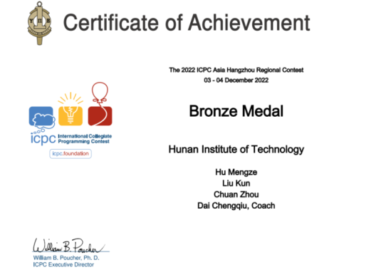 戴成秋老师指导胡梦泽等同学获第47届ACM-ICPC亚洲区域赛铜奖