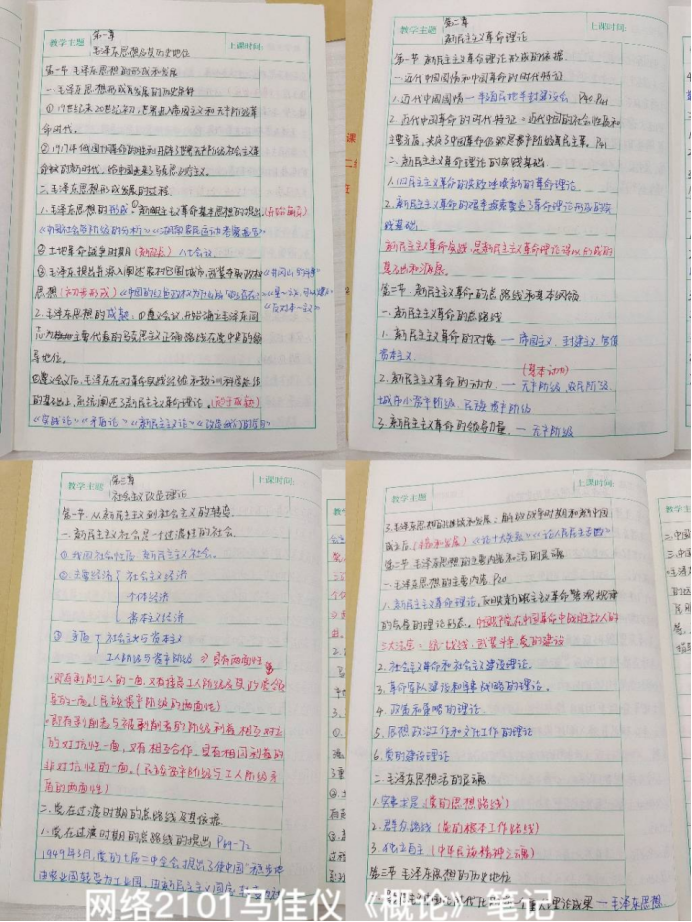 每一份课堂笔记都细致的表达着老师的讲课内容,同时也展现着湖工学子对知识的渴望,对学习孜孜不倦的热爱精神。笔记内容涉及嵌入式系统、C++面向对象程序设计、高等数学、大学物理、习近平新时代中国特色社会主义思想概论等多种课程科目。每一位同学的笔记各不相同:有热衷于用彩色笔来进行笔记记录,以便重点突出的;有乐于制作思维导图,以便梳理知识网络的;有利用便利贴突出总结知识点的,可谓“八仙过海,各显神通”。