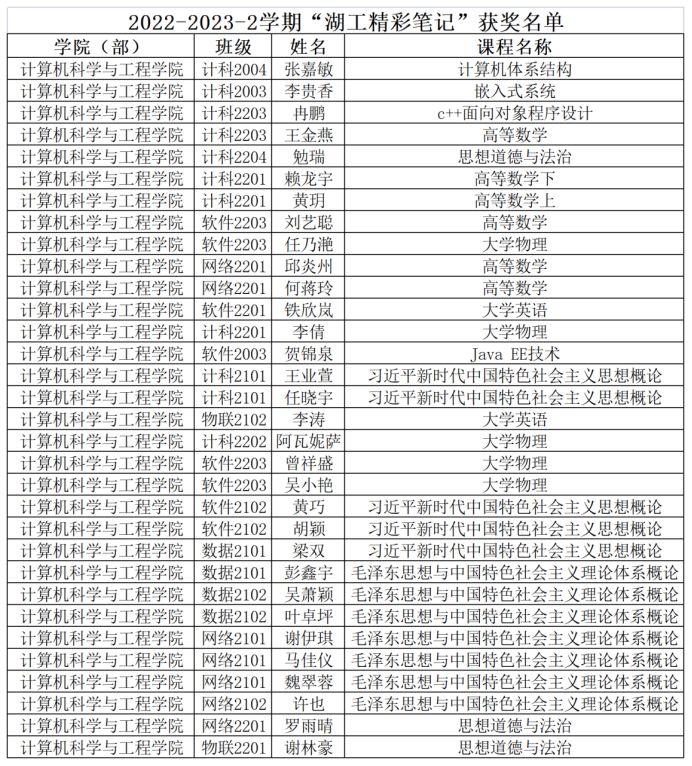 活动开展以来,得到了我院各级同学的积极响应,经过班级推荐和学校评审,我院最终共有32位同学的笔记脱颖而出。我院获奖名单如下: