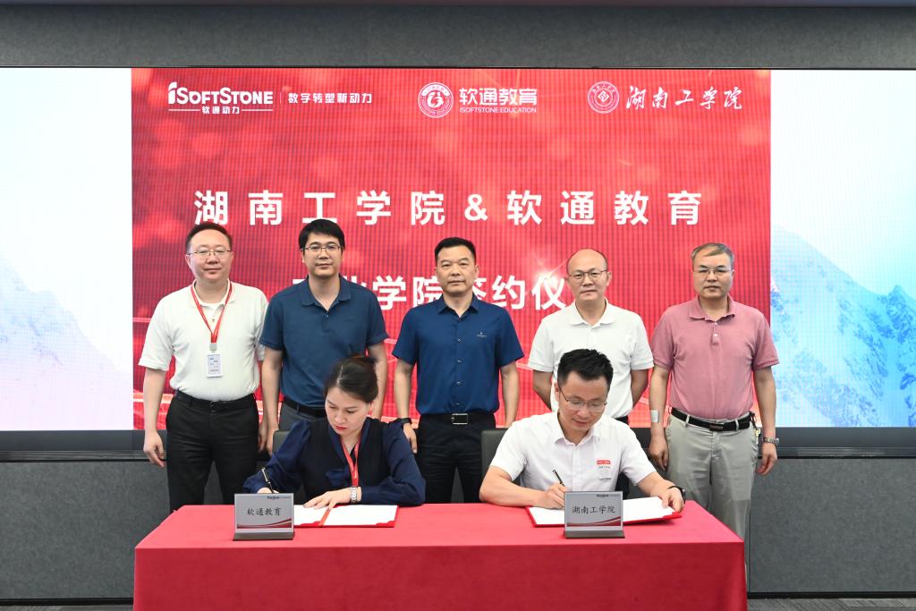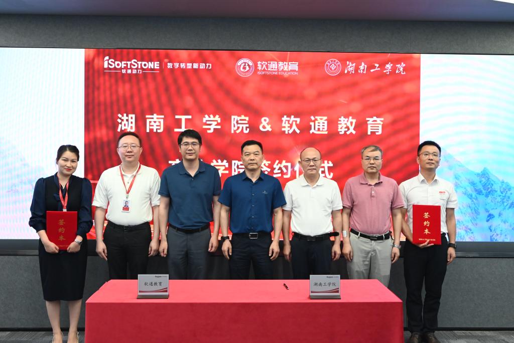财务处处长赵少平、国际合作交流处处长陆秀令、计算机科学与工程学院院长陈敏、安全与管理工程学院院长胡鸿、智能制造与机械工程学院院长吴远志、科技与校企合作处副处长何西;软通动力咨询与数字化创新服务线联席总裁杨念农、软通医信董事长杨大山、软通动力战略客户拓展部助理副总裁焦弋、软通教育教育研究院院长杜辉、软通教育华中区销售总监沈俊、软通教育高级项目总监陈瑜等人参加了签约仪式。