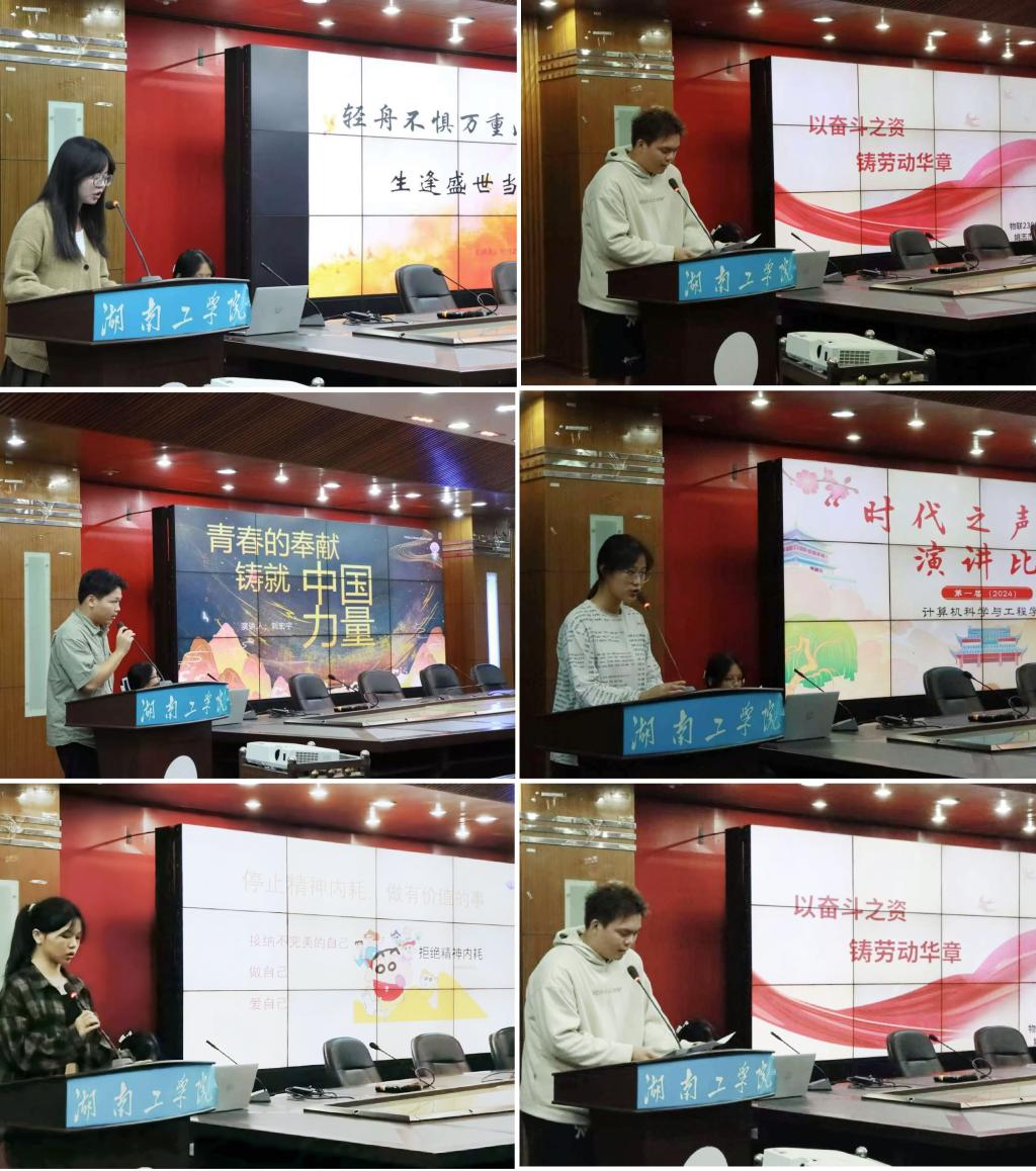为弘扬时代精神,增强青年学生对国家和社会的责任感,11月6日晚上,计算机科学与工程学院在2216教室成功举办了“时代之声”主题演讲比赛。学院全体辅导员、团委学生会主席团成员金柏勋、田燎原、苏瑞杰、刘宇辉、林鹤轩出席并担任评委。