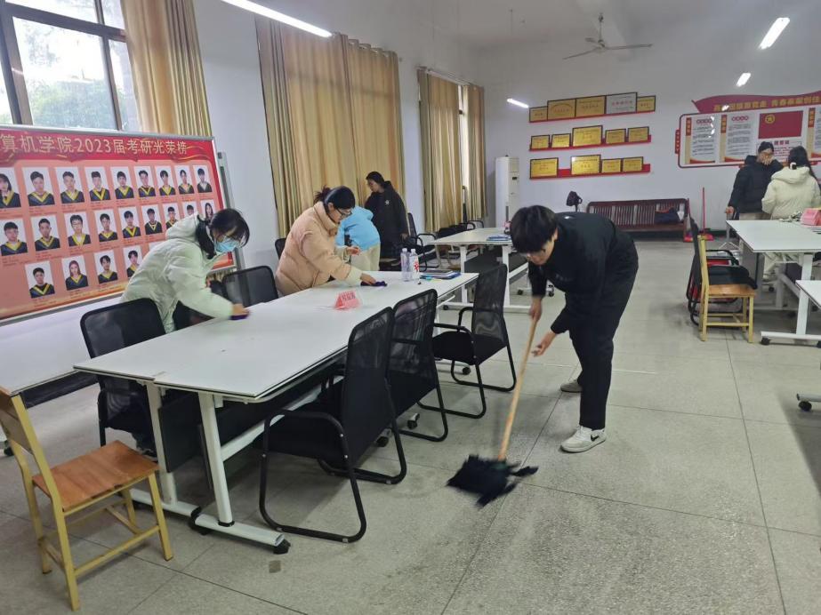 此次活动得到同学们的积极响应,近80名志愿者踊跃参与。活动过程中,志愿者们展现出高度的责任感与团队协作精神。他们认真清扫地面垃圾、擦拭门窗与桌椅、整理摆放书籍,不放过任何一个卫生死角。经过两小时的辛勤劳动,信息楼教学区及会议室焕然一新,为师生营造了更加整洁舒适的工作和学习环境。