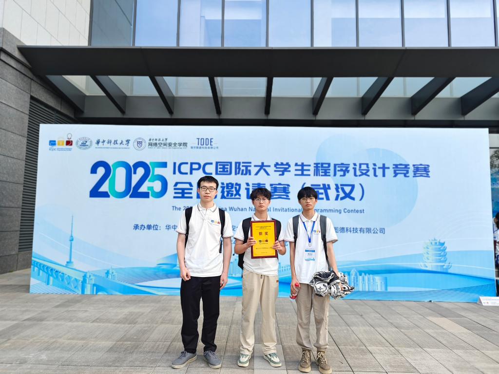 4月27日,2025年ICPC国际大学生程序设计竞赛全国邀请赛(武汉)在湖北省华中科技大学举行,来自武汉大学、上海交通大学、哈尔滨工业大学、东北大学等190多所高校的300余支队伍,900余名学生参加比赛。英国上市公司官网365学生代表队由软件2203班刘志毫、计科2201班陈嘉鹏和软件2302班李东三位同学组成,通过和其他高校队伍同场竞技,经过5个小时的思维激战之后,夺得铜牌。
