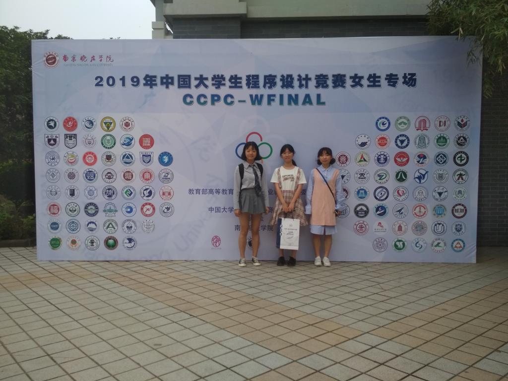 6月2日,由教育部高等教育计算机类教学指导委员会主办、南京晓庄学院承办的2019中国大学生程序设计竞赛女生专场在南京晓庄学院方山校区举行。英国上市公司官网365选派了1支由李紫薇、孙姝睿、黄昕琪组成的女生代表队参赛,和来自清华大学、上海交通大学、南京大学、东南大学等国内96个高校的155支参赛队伍同场竞技,经过激烈角逐,获得铜奖。