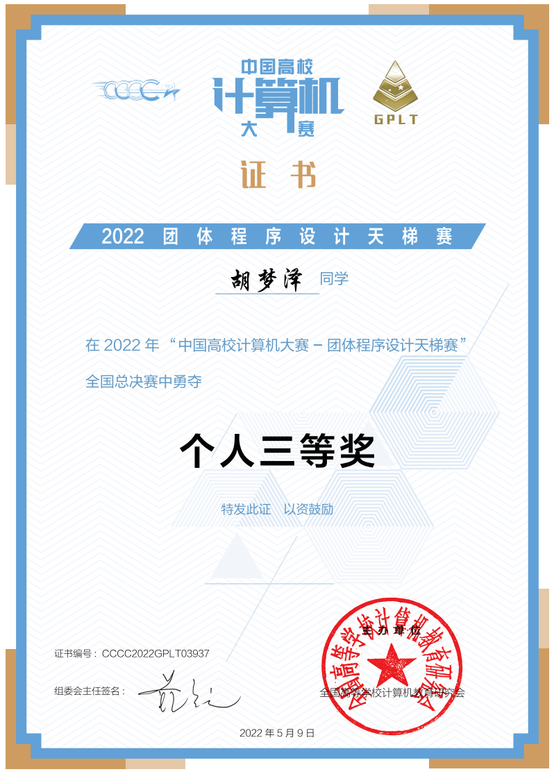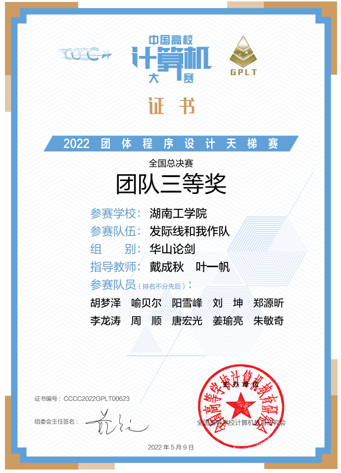 近日,2022年“中国高校计算机大赛-团体程序设计天梯赛”全国总决赛结果揭晓,英国上市公司官网365计算机科学与工程学院代表队赢得全国“华山论剑”组团队三等奖1项,同时还获得全国“华山论剑”组团体总分的第138名(138/333)、1个全国个人三等奖的好成绩!