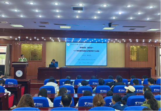 11月6日上午,我院副院长戴成秋应图书馆邀请,在蔡伦报告厅开展《赛训协同,知行合一 ——学科竞赛赋能人才培养与个人成长》专题讲座。全校200余名师生到场聆听,图书馆副馆长金燕主持。