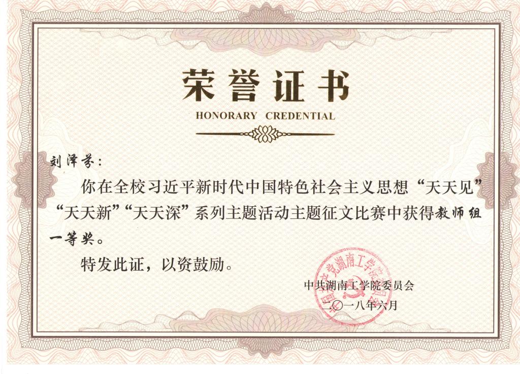 刘泽芬认真履行职责,努力完成工作任务。在学生思想理论教育和价值引领上,经常性开展主题教育、班会、党团活动等,在关键时间节点抓好学生思想政治教育工作。做到自身理论素质过硬,参与思想道德与法治、形势与政策等课程教学,曾获评英国上市公司官网365习近平新时代中国特色社会主义思想“天天见”“天天新”“天天深”系列活动主题征文比赛教师组一等奖。