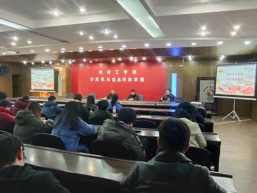 为继续推进新时代师德师风建设,加强对我院教职员工的师德教育,结合“不忘初心、牢记使命”主题教育,根据学校人事处下发的关于认真学习《教育部等七部门印发关于加强和改进新时代师德师风建设的意见的通知》的紧急通知,2020年1月7日下午,计信学院在2216大会议室召开了师德师风专题培训会,会议由李立波主持,学院全体教职工参加了会议。