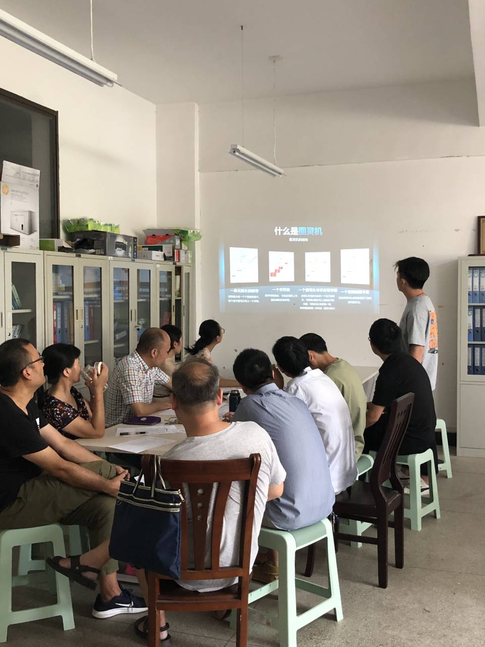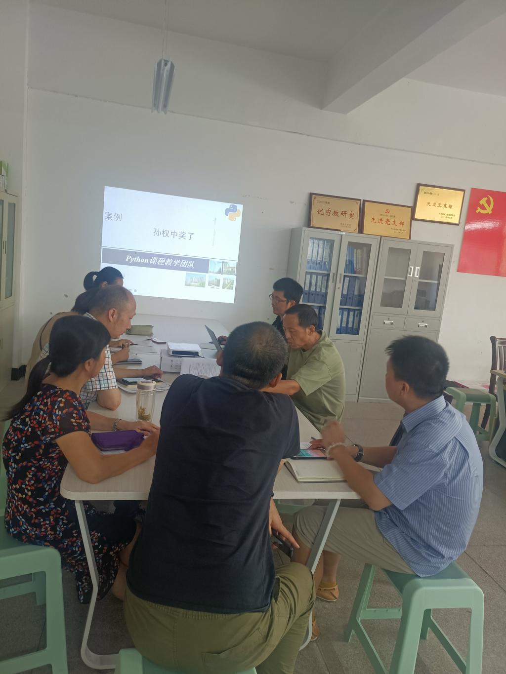 校课程思政教学比赛一等奖获得者戴成秋老师就课程思政视域下《Python语言程序设计》课程的教学重构进行了介绍,并示范讲解了“孙权中奖了”课程案例。新任课教师程斌老师试讲了大学计算机基础课程中的“图灵机”章节。