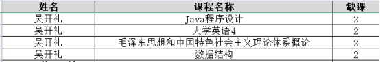 第9周缺课较多的同学:计科2003 吴开礼 缺课8学时
