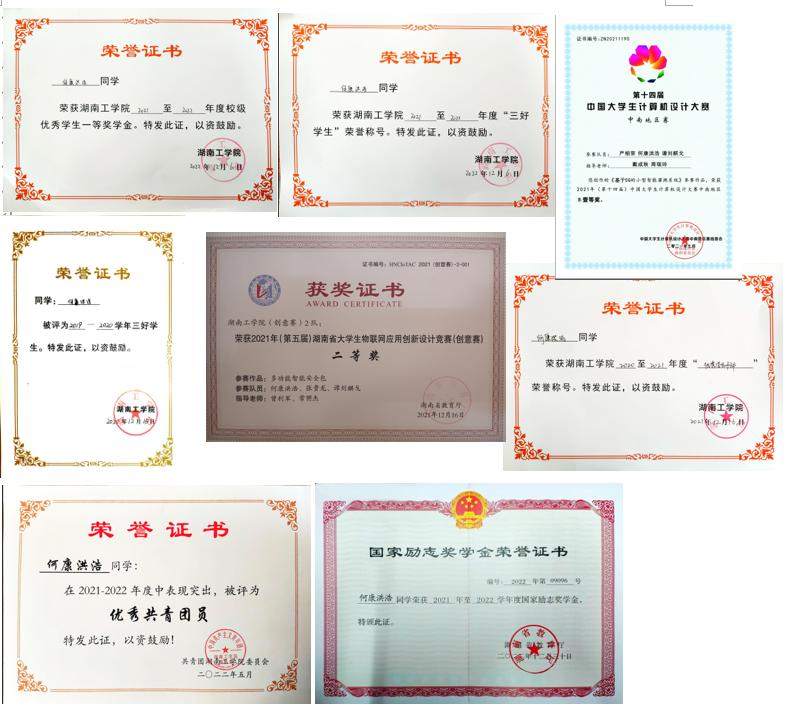 在校期间专业排名前5%,大三学年专业排名第一,获得过全国大学生计算机设计大赛省级一等奖,湖南省物联网竞赛二等奖,国家励志奖学金、校级一等奖学金、校级三好学生、校级优秀学生干部、优秀共青团员、优秀班委。
