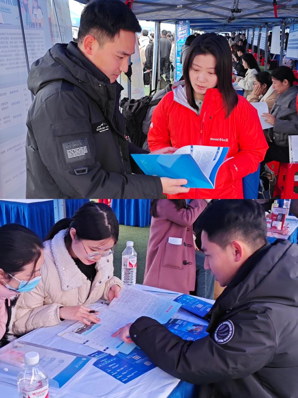 会场人潮涌动,毕业生求职热情高涨,毕业生们积极投递简历,向用人单位介绍自己的专业技能特长和与招聘岗位相关的实习经历。