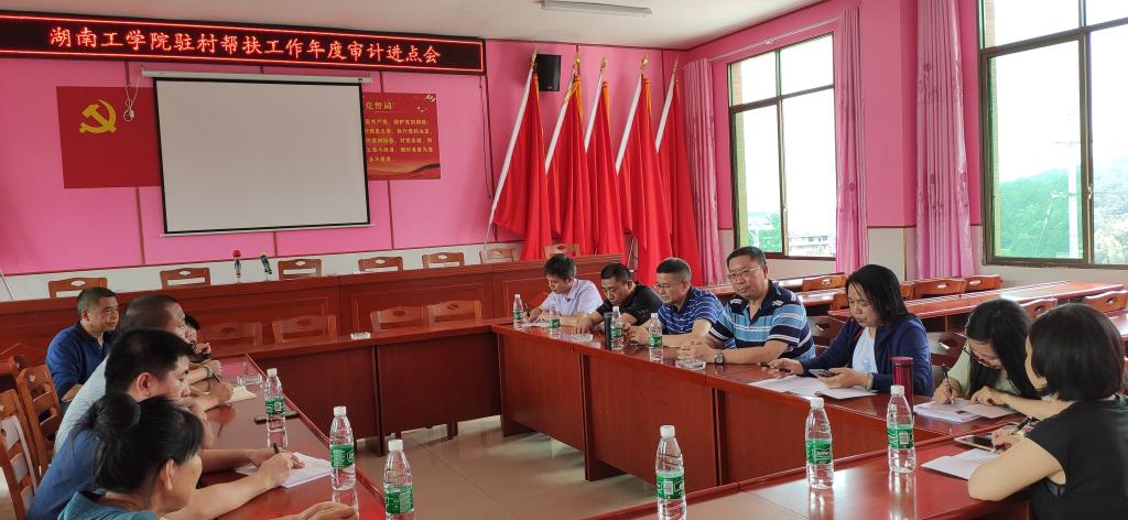 现场抓资金审计。学院驻隆回县石田村帮扶工作审计进点会上,刘龙昌书记听取了扶贫工作队扶贫工作情况汇报,对驻村帮扶政策落实、产业发展情况、脱贫情况等进行了全面了解。会后,督查组一行通过与村支两委座谈和实地考察,深入了解了石田村基础设施建设情况和产业帮扶开展情况。审计小组通过调阅村级财务资料、查阅文件资料、与村支两委座谈、走访贫困户、实地考察等对扶贫工作开展情况、资金管理情况展开现场审计,并对"以购代捐"情况进行了审计调查。