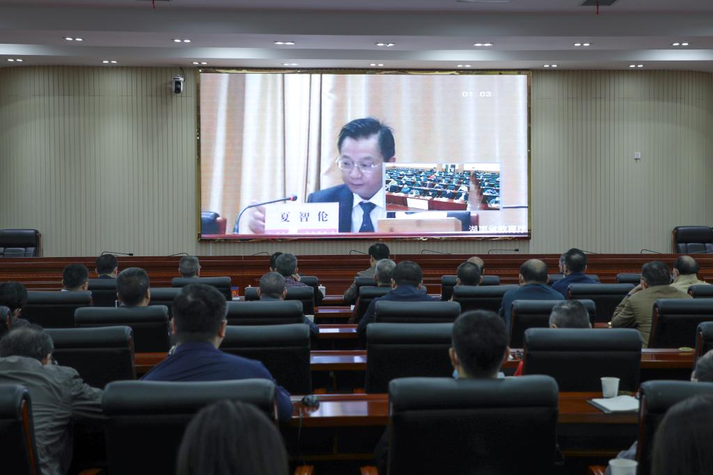夏智伦强调,全省教育系统是全面从严治党的重要阵地,一是要提高政治站位,切实增强教育系统全面从严治党的使命感紧迫感。二是要聚焦根本任务,重点把握“强化政治引领主线”、“对好党建思政标线”、“严明作风建设红线”、“守牢廉洁从政底线”、“巩固教育生态防线”等五条工作线,统筹推动教育系统全面从严治党向纵深发展。三是要落实主体责任,确保教育系统全面从严治党落地见效。
