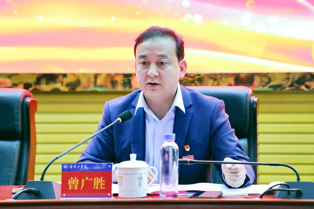 曾广胜强调,各部门单位、各基层组织会后要传达落实会议精神,要提高站位抓落实,不断增强全面从严治党的政治自觉、思想自觉和行动自觉。要融入发展抓落实,把推进全面从严治党与学校高质量发展深度融合。要聚焦重点抓落实,为早日建成特色鲜明的区域性高水平应用型大学而团结奋斗,为实现“三高四新”美好蓝图和教育强省建设做出新的湖工贡献。